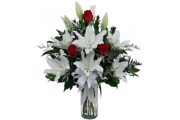 Vazoda 10 Beyaz Gül Lilyum Aranjman